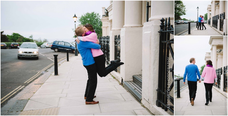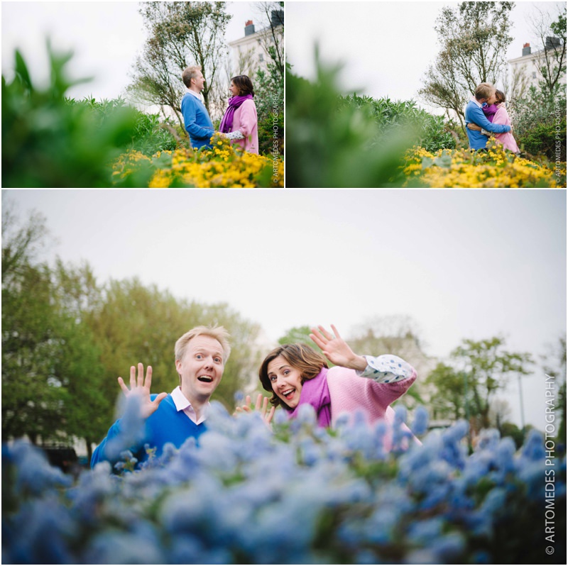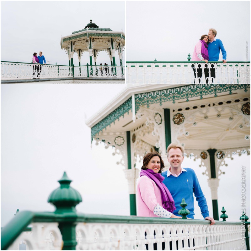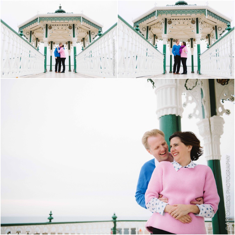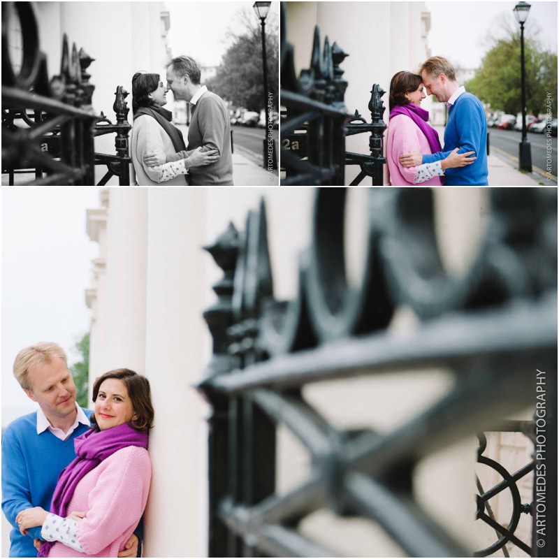 Lucky me! I was back again on Monday for another Brighton Pre Wedding Shoot with Sarah & Hugo who live a stone’s throw from the seafront. Their June wedding is just around the corner and with wedding season in full swing, we caught up on the bank holiday to spend a bit of time shooting along the seafront, at the fabulous bandstand and in some of the small gardens of a few of Brighton’s stunning 19th Century Regency squares, capturing a few moments together. Sarah & Hugo have got some lovely plans for their summer wedding and I can’t wait to cover their day for them – but for now, here are a few shots from our shoot together. Despite the chill in the air and overcast sky, they were loads of fun and we had a real hoot. These shoots are all about relaxing and enjoying the experience – there’s no pressure and I always work in a very unhurried relaxed way.