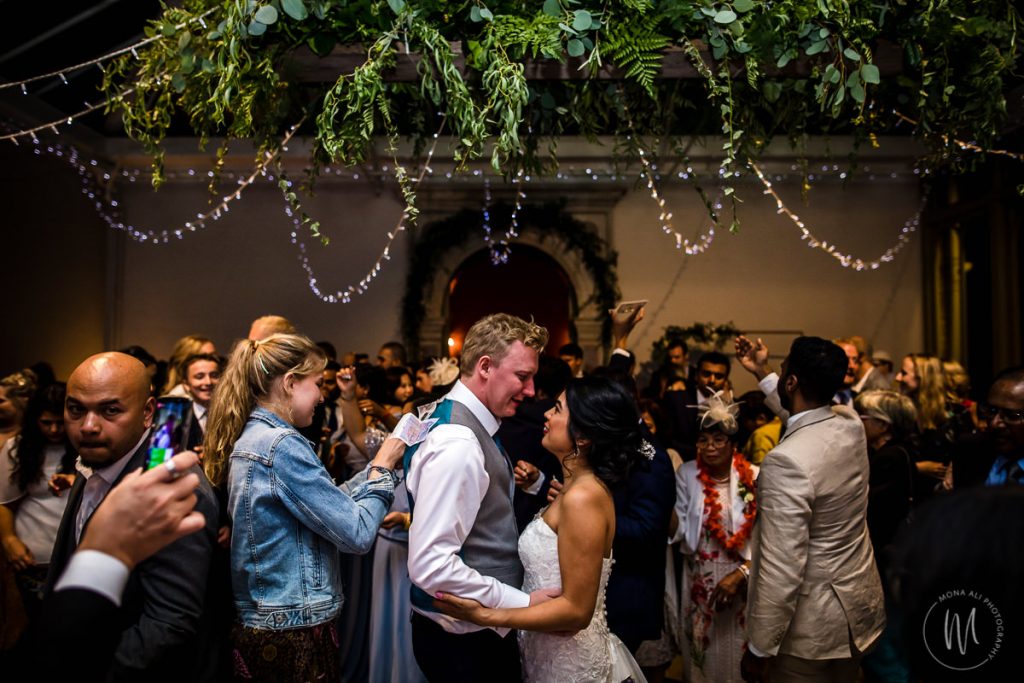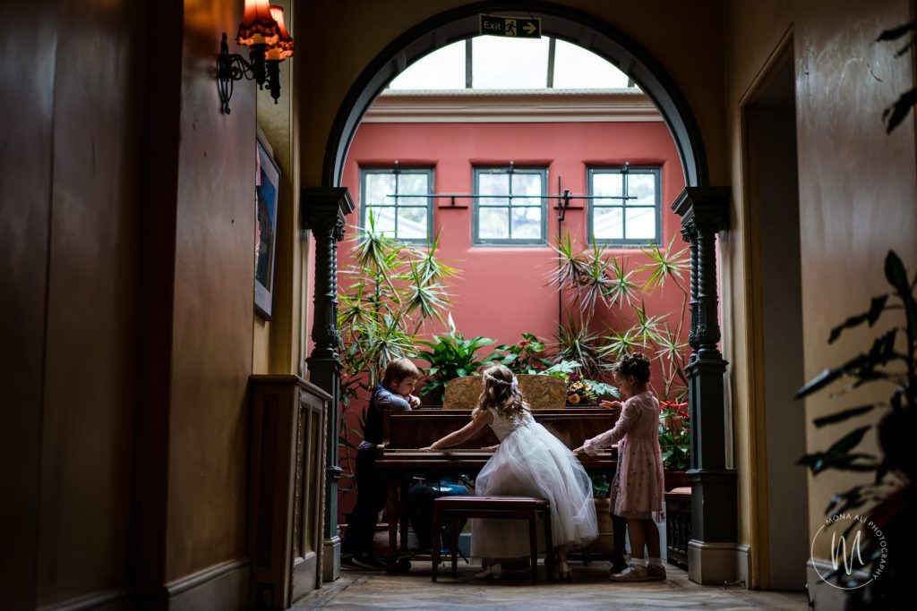 There’s a bright, open and summery feel to this space which makes it a beautiful spot to take photographs. Walking through a marble archway into the great dining hall, you might experience a moment of theatricality and drama. With its newly decorated walls and curtained stage, this room reminds me of a small theatre. This space can be challenging from a photographic perspective, with its only natural light source being the huge skylight in the vaulted ceiling high above. And in winter there is no natural light in here. But I’ve worked here often enough that I know exactly how to handle the light to get the best photographs of your speeches and celebrations.