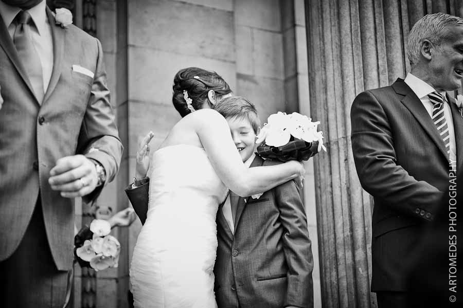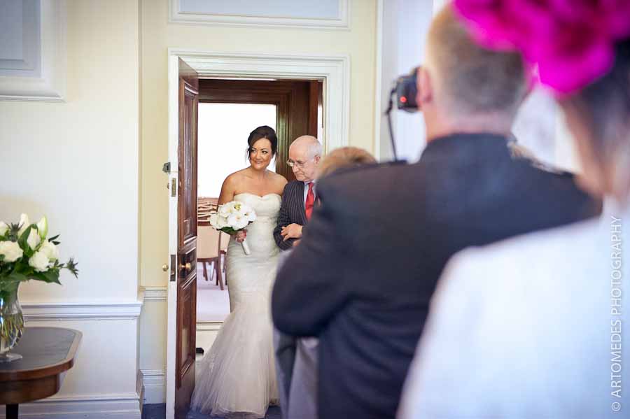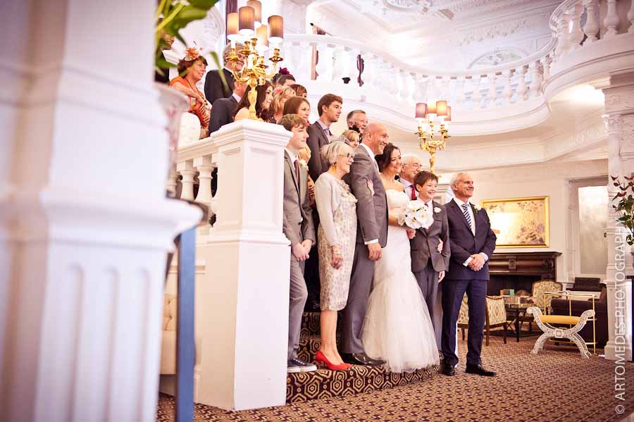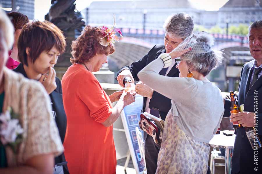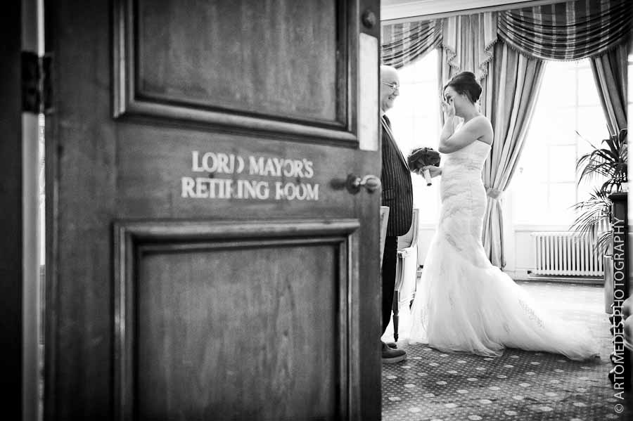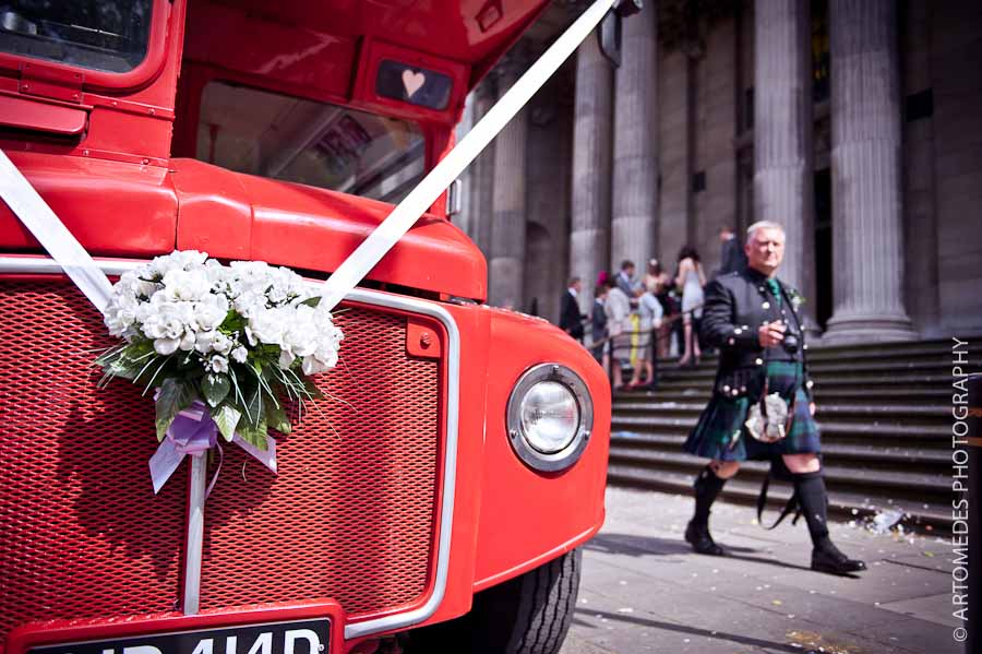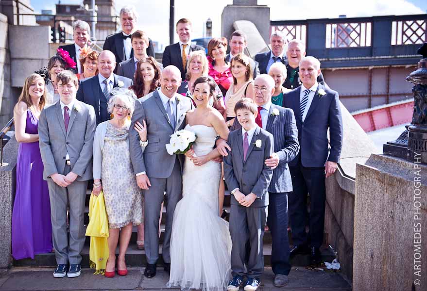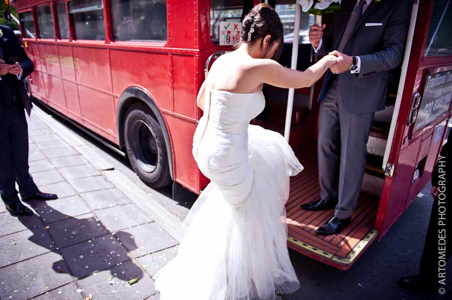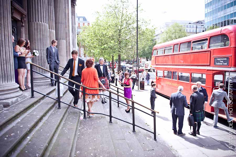 Small is beautiful – so they say!! I recently photographed a wedding at Old Marylebone Town Hall, followed by the reception at St Stephen’s Club in central London. What a lovely, small and intimate wedding Lorna & Phil’s was. It was nice to be back at the Old Marylebone Town Hall again where coverage started with a short ceremony in the blue marriage room. After the short but tearful ceremony, everyone got on a Routemaster for a whistle-stop tour through Westminster to St Ermin’s Hotel for some formal group photos – the hotel was a held special memories for Lorna & Phil, hence the stop-off. Then back on the Routemaster where the bus went on to their final stop-off, St Stephen’s for a fabulous champagne reception, followed by the wedding breakfast. It became a bit of a trip around town as we even made time for a short photo-stop-over on the embankment en-route.