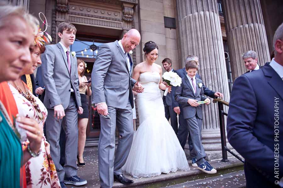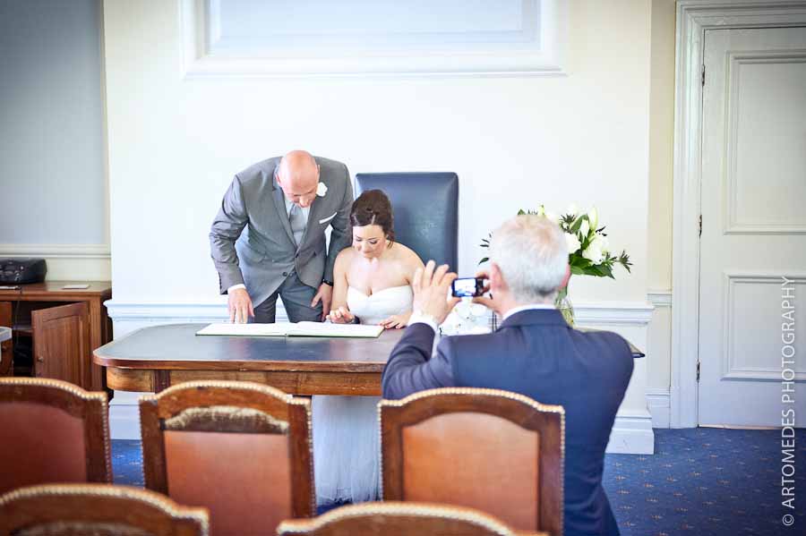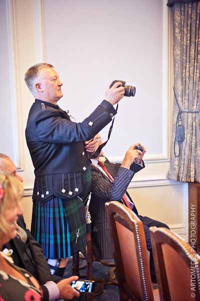 The Bride, Lorna wore a beautiful fish-tail dress with impossibly high Jimmy Choo’s, the Groom, Phil in a beautifully tailored suit, were beaming all day. Guests were decked in lots of lovely bright colours and there were even a few kilts!! With smaller weddings it can be harder to stay in the background, but the guests were so friendly and welcoming that we got to know them pretty well after 8-9-hours. Unbelievably, we had a standing ovation when we left! Now that’s never happened before. I really love small weddings and this one had a wonderfully intimate atmosphere, coupled with relaxed London chic!