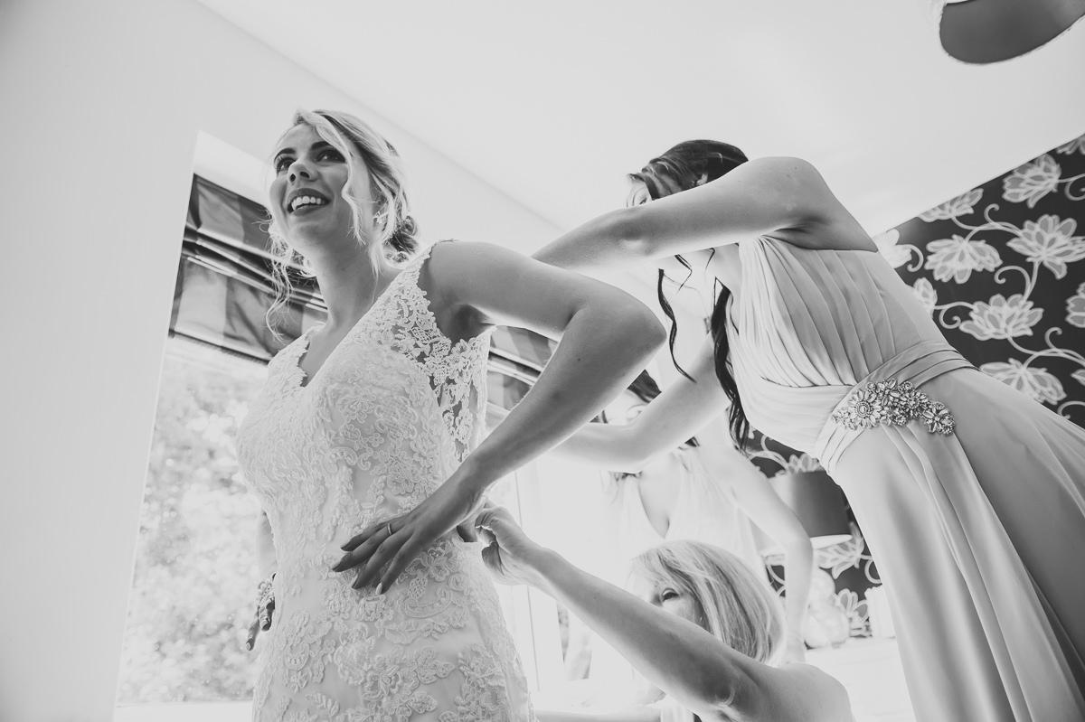 First up is a shot from Harriet’s preparations at home in Macclesfield before their church wedding and celebrations at the stunning Arley Hall. Here, Harriet’s mum and sister are helping to do up the  buttons on her wedding dress, moments before she leaves to marry her sweetheart Alex. Harriet is a bundle of nerves and excitement, looking every inch the radiant bride. Watch out for the full blog on this gorgeous wedding to follow!