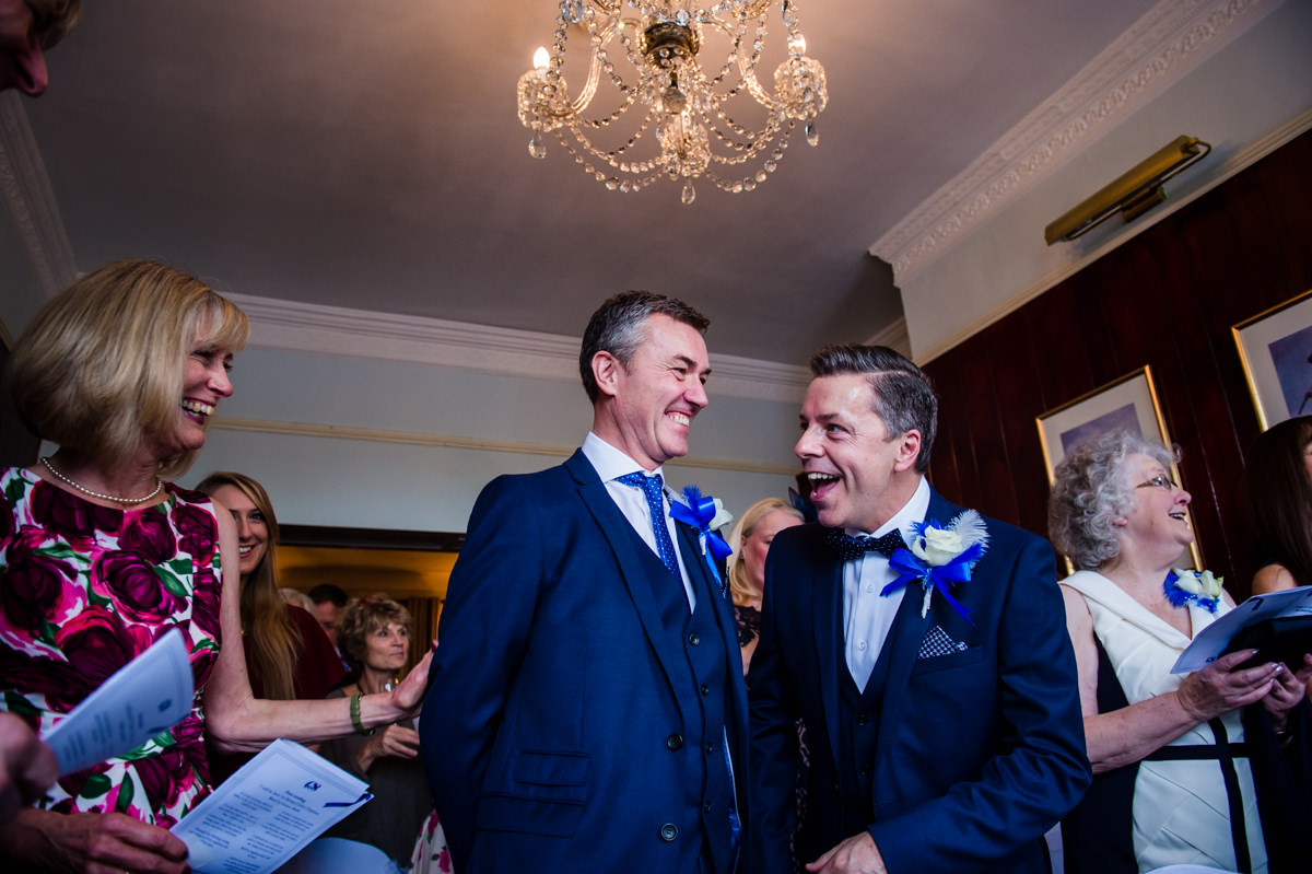 This happy photo was from Craig & Stephen’s London wedding, in Blackheath. They married in a small hotel, in a tightly packed ceremony room, surrounded by all their fave people. There was singing and laughter and lots of smiles as you can see. Love capturing unscripted moments like these!
