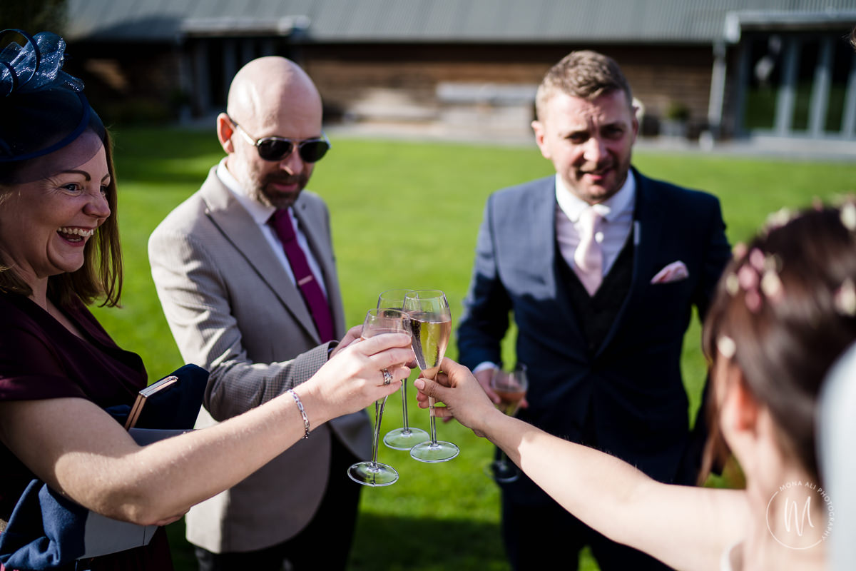 Confetti Throw. Fizz in the Sunshine. Couples Photos. Dinner in the Threshing Barn
