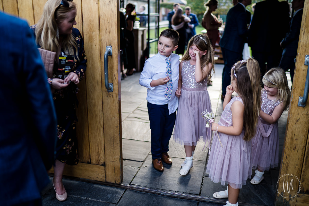 Steven and his family arrived, and guests started filtering through to the dairy barn, whilst Clare and friends were toasting the day with fizz. Steven was greeting family and friends and there were lots of kids running around, kicking blow up pigs and getting high on sugar! A must on most wedding days! The bright, light filled barn was packed with guests and a familiar face, Amanda the Registrar (whose daughter’s weddings I’ve also photographed!!) It was a tear filled ceremony, with Steven’s son doing a grand job as ring bearer. And a friend sang beautifully as they signed the register. After a sunny start, it rained during the ceremony but as often happens, stopped just as we were all heading outside for the confetti throw.