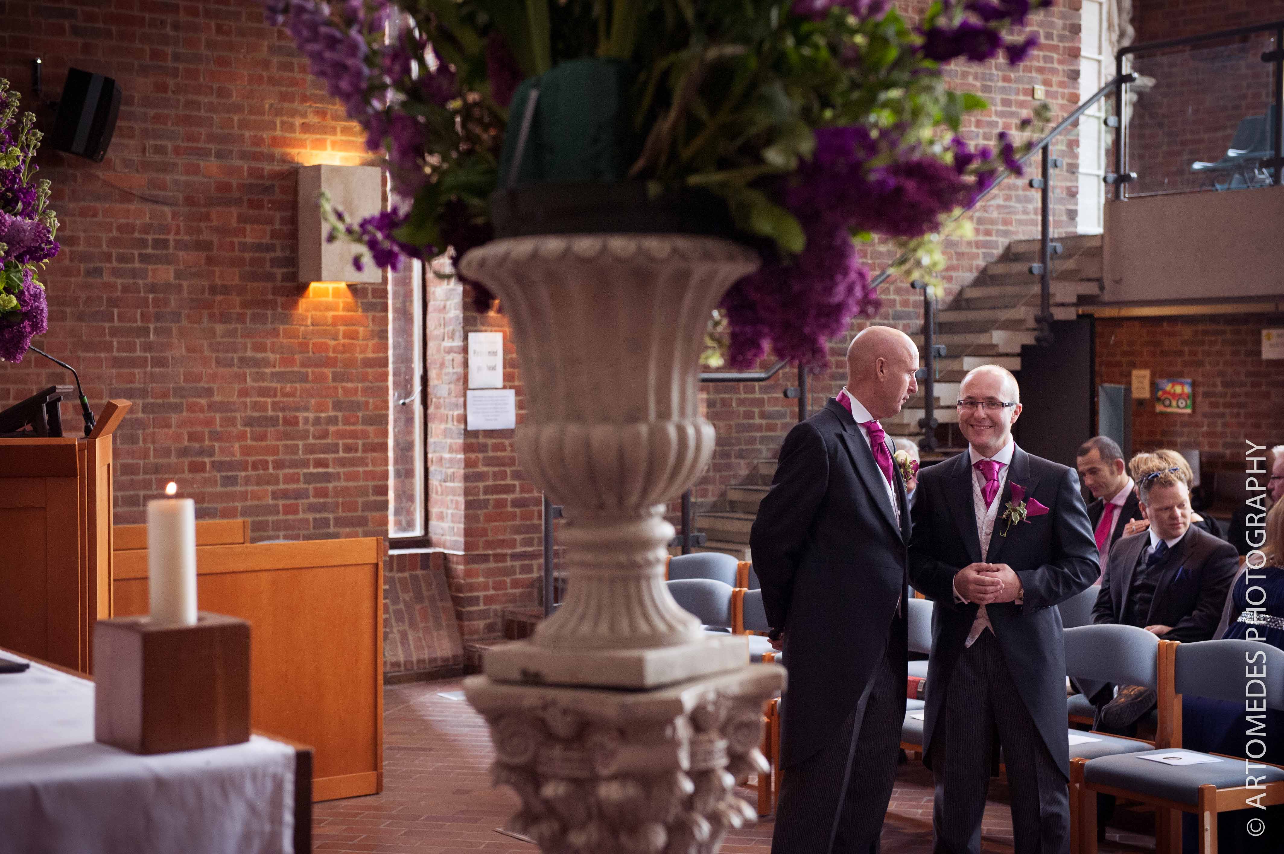 Bee & Jason’s lovely spring wedding was at the new Hilton Hotel in Syon Park, built in the grounds of the original Syon Park, the home of the Duke and Duchess of Northumberland. Their wedding day started with a very nervous Bee’s preparations at the hotel with her closest friend, Dina, and surprise visits from her mum and daughter, before heading off to a very moving ceremony at All Saint’s church in Isleworth. It was a really touching family affair as their four gorgeous children were bridesmaids, ring bearers and ushers, and both extended families came together to celebrate in style. It was a nice change shooting in a modern church with great views from the balcony. With her striking Indian features, Bee looked so elegant in her stunning dress with just enough sparkle and killer heels (of course!), and Jason was beaming all day looking at his beautiful bride, full of excitement and mischief!