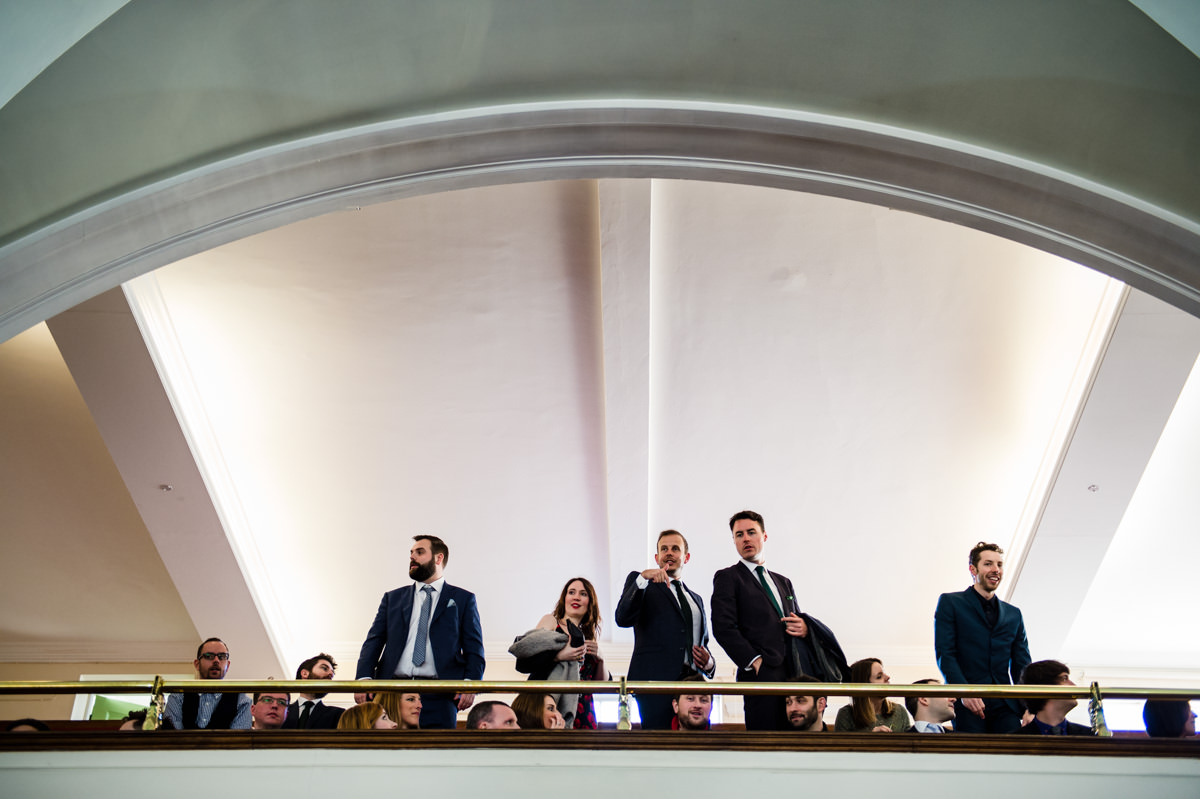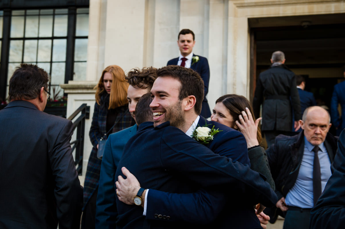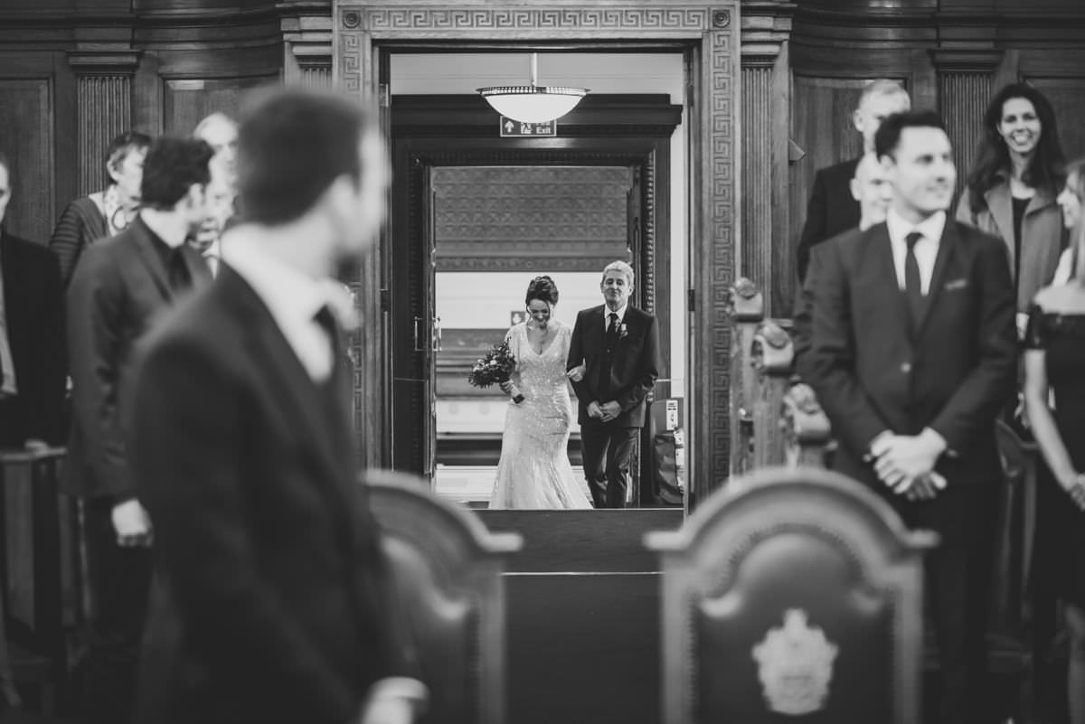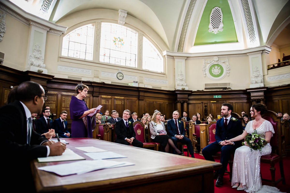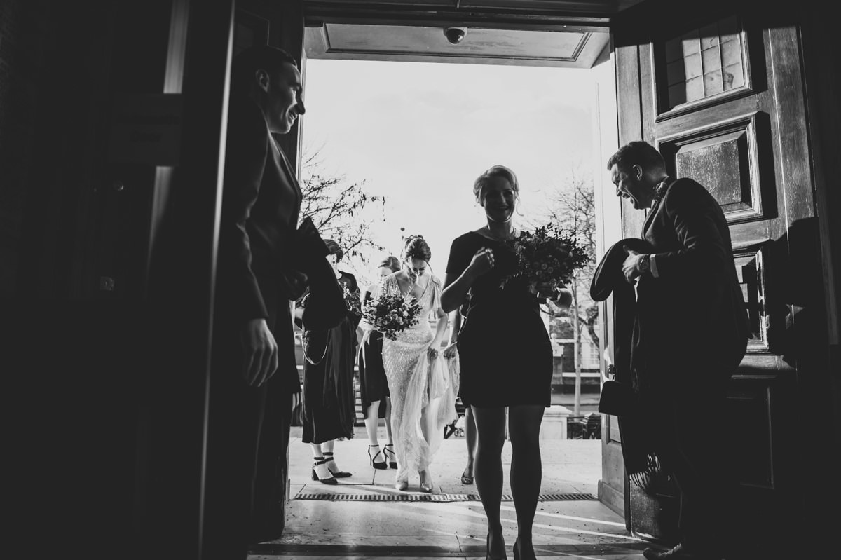 Greg was the second of the Case family brothers to get married and I’d been lucky enough to cover his older brother Nick’s wedding to Catherine the year before (here’s the blog post of their Islington Town Hall & Artisan of Clerkenwell wedding if you want a peek). Greg and his gorgeous partner Lauren, were starting their stylish city wedding at Islington Town Hall and it was great seeing so many familiar faces there again. Greg arrived as guests were gathering pre-ceremony on the steps of the town hall, and button holes were being pinned. And it wasn’t too long before Lauren arrived with her posse of bridesmaids, nervous excitement bubbling away, ready to start the day.