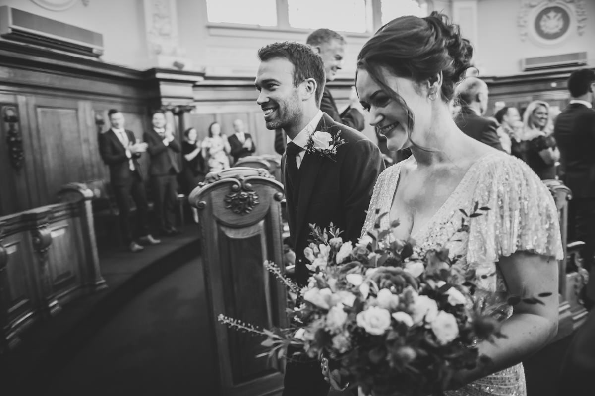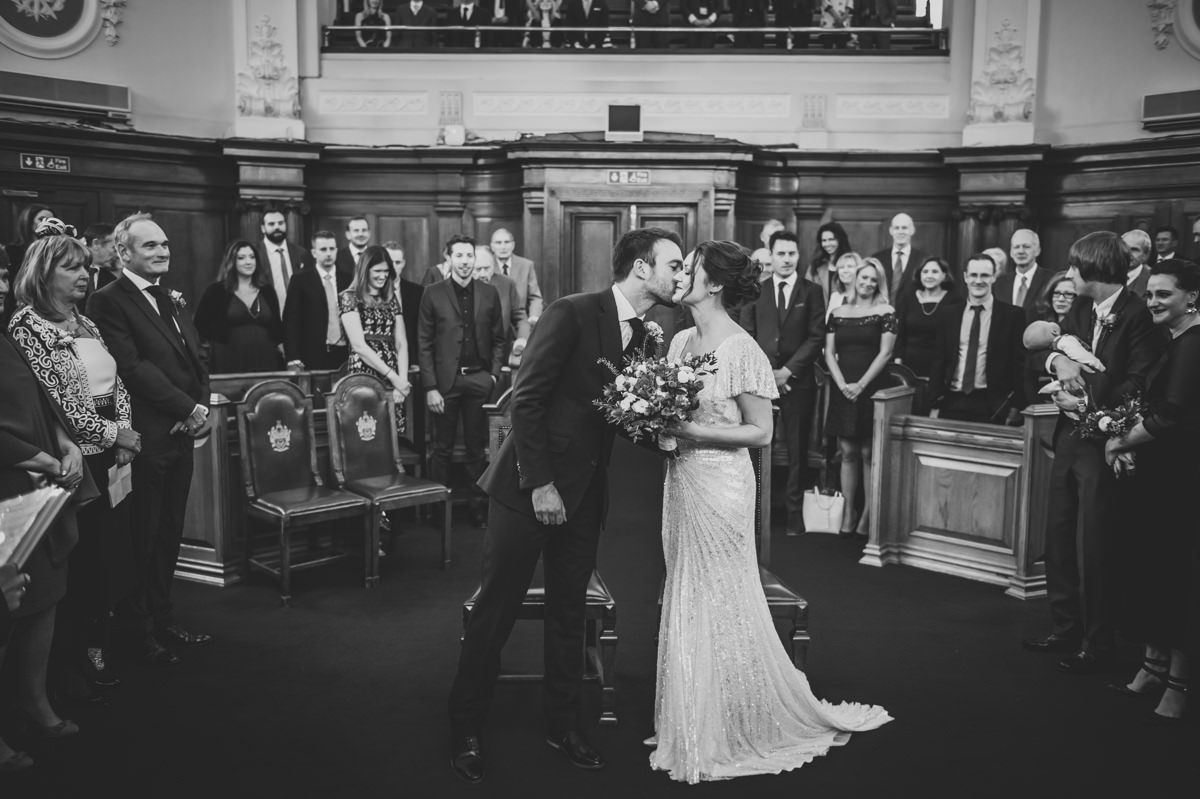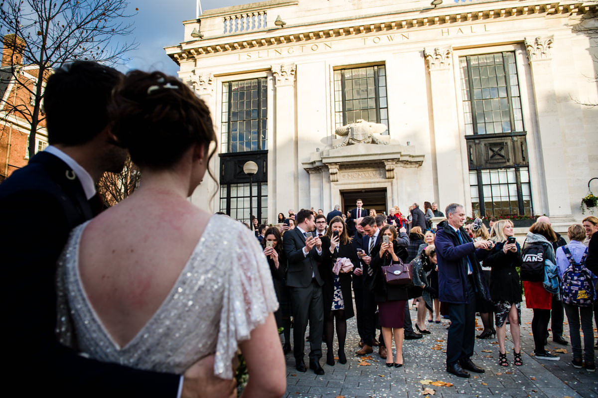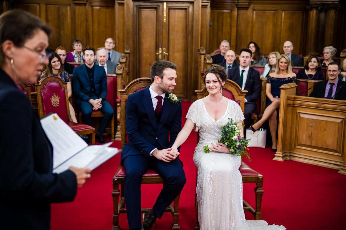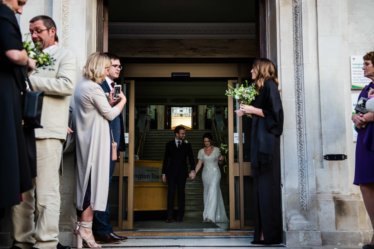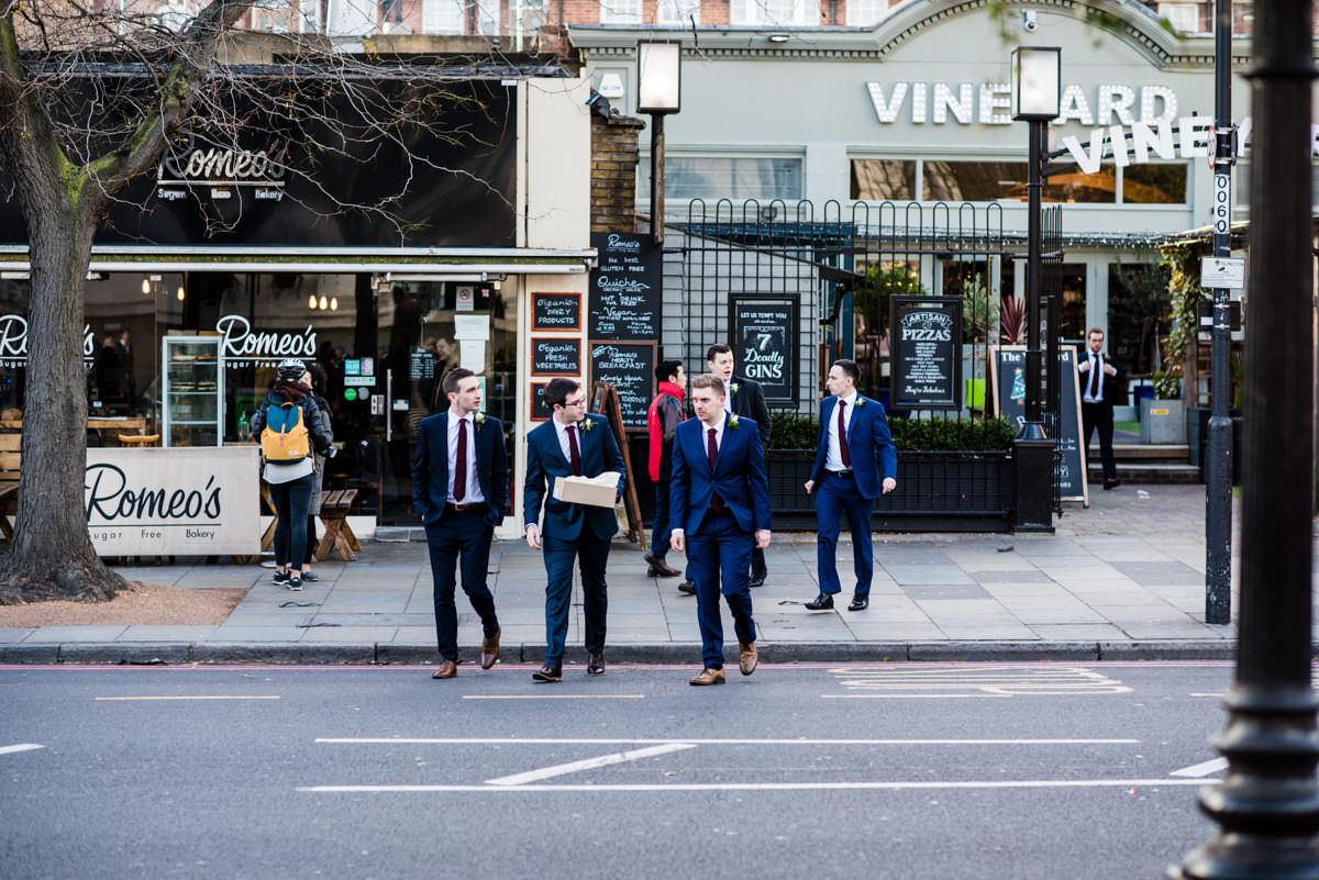 Greg was the second of the Case family brothers to get married and I’d been lucky enough to cover his older brother Nick’s wedding to Catherine the year before (here’s the blog post of their Islington Town Hall & Artisan of Clerkenwell wedding if you want a peek). Greg and his gorgeous partner Lauren, were starting their stylish city wedding at Islington Town Hall and it was great seeing so many familiar faces there again. Greg arrived as guests were gathering pre-ceremony on the steps of the town hall, and button holes were being pinned. And it wasn’t too long before Lauren arrived with her posse of bridesmaids, nervous excitement bubbling away, ready to start the day.