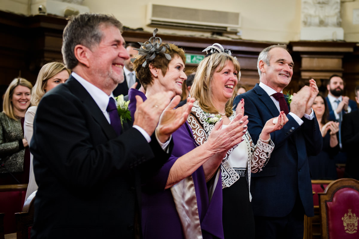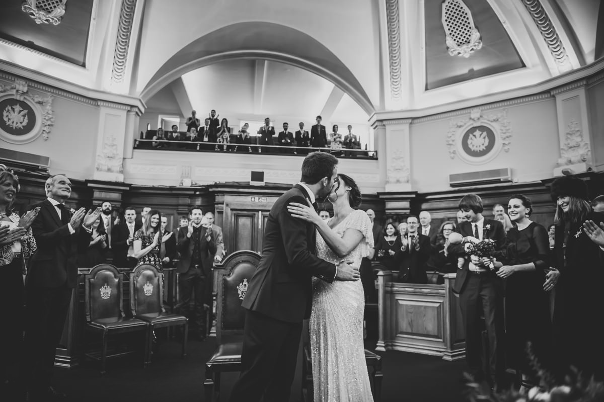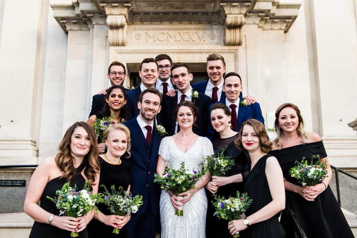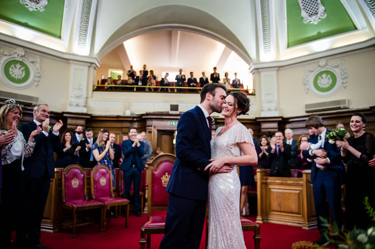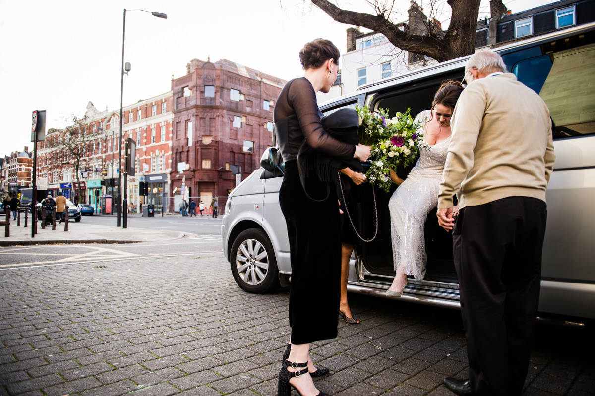 Greg was the second of the Case family brothers to get married and I’d been lucky enough to cover his older brother Nick’s wedding to Catherine the year before (here’s the blog post of their Islington Town Hall & Artisan of Clerkenwell wedding if you want a peek). Greg and his gorgeous partner Lauren, were starting their stylish city wedding at Islington Town Hall and it was great seeing so many familiar faces there again. Greg arrived as guests were gathering pre-ceremony on the steps of the town hall, and button holes were being pinned. And it wasn’t too long before Lauren arrived with her posse of bridesmaids, nervous excitement bubbling away, ready to start the day.