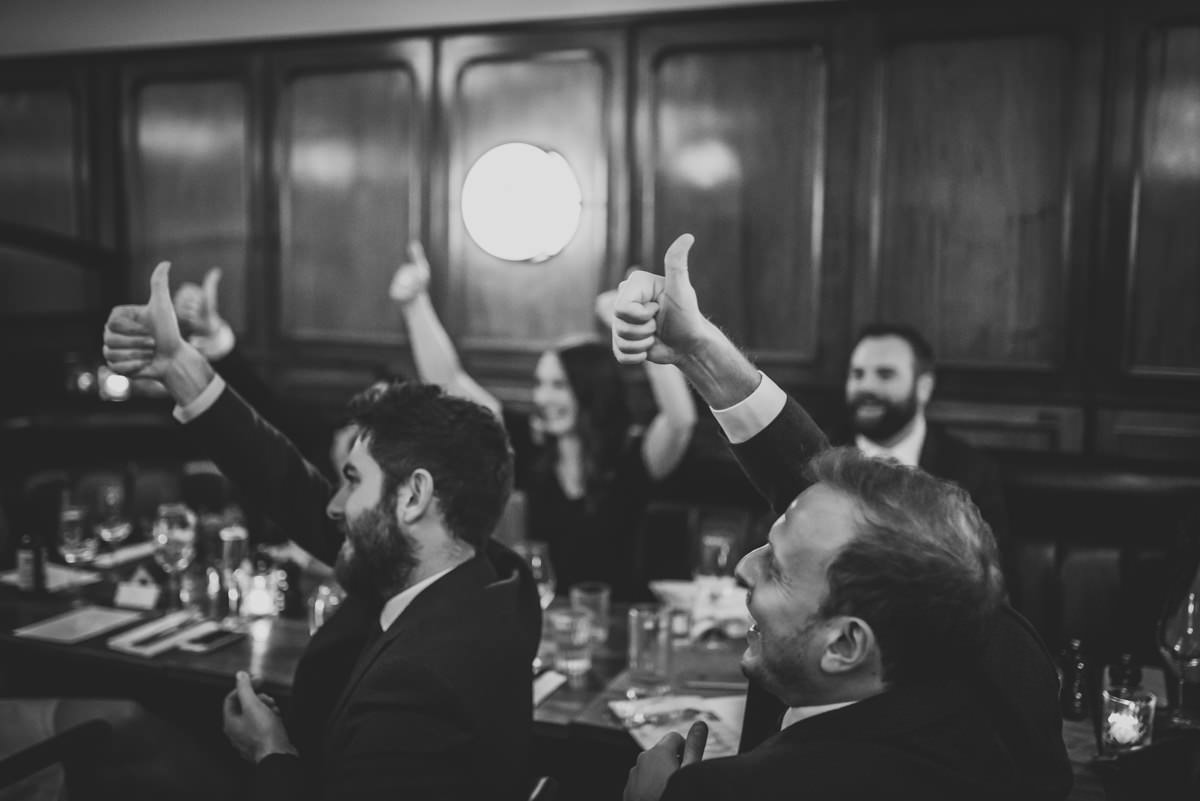 It wasn’t long before the buses and guests arrived and the celebrations could begin at the Guildhall. The bar was packed and waiters squeezed through gaps to serve canapés and champagne as guests mingled. The call to dinner was made and speeches started as they often do before dinner to eradicate nerves so dinner can be heartily enjoyed. A great crowd full of big families and good friends with lots of cheer, some of the best ingredients for a good wedding. Lauren & Greg were a super lovely couple, quiet and thoughtful, appreciative of my low key and observational approach to photographing weddings. If you’re looking for a photographer for your wedding who won’t take over, won’t get all bossy on you and your guests and won’t make the day a photo shoot – get in touch. You could be just the kind of couple I love working with! Lauren & Greg – I wish you both a lifetime of happiness xx
