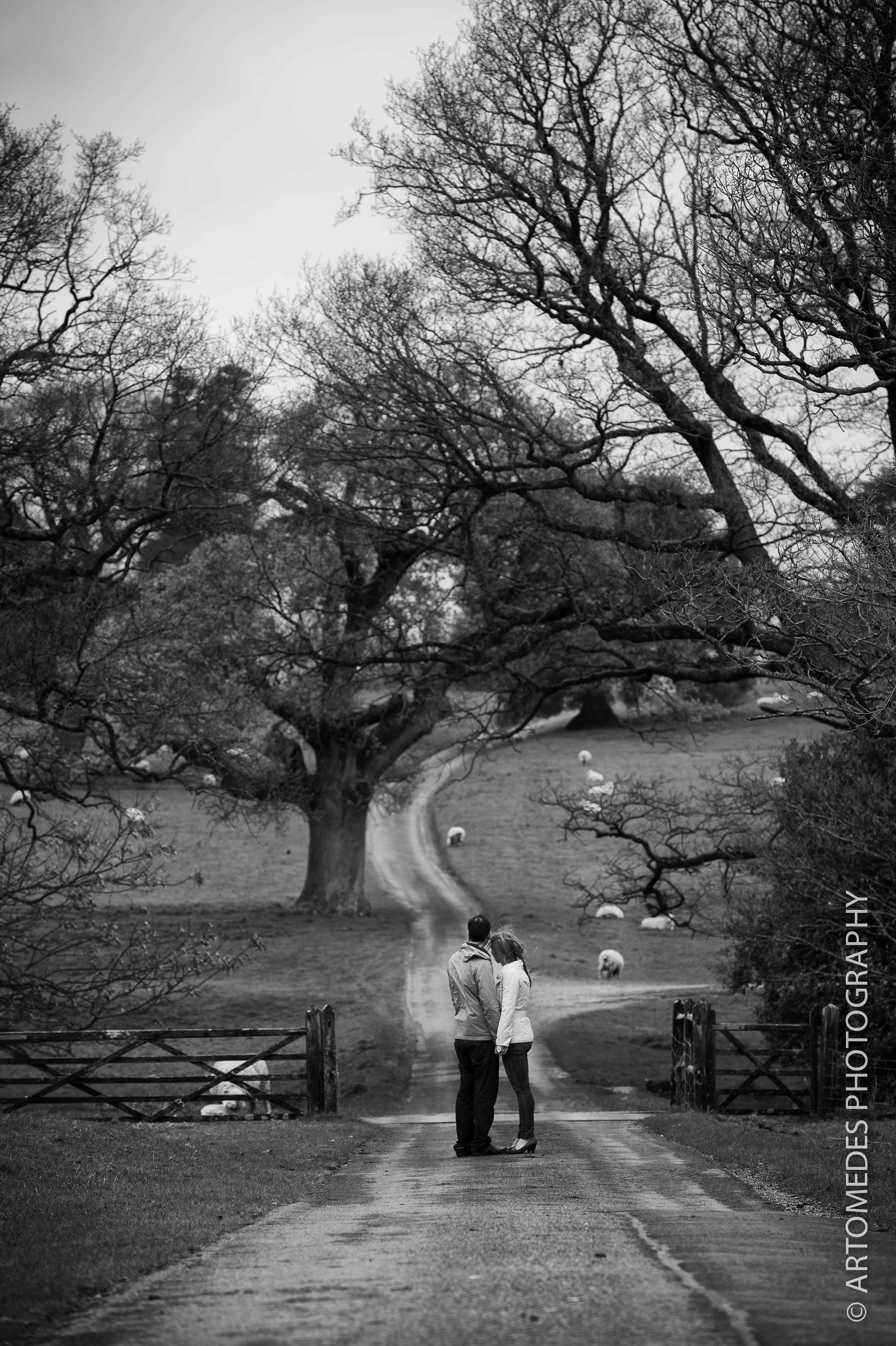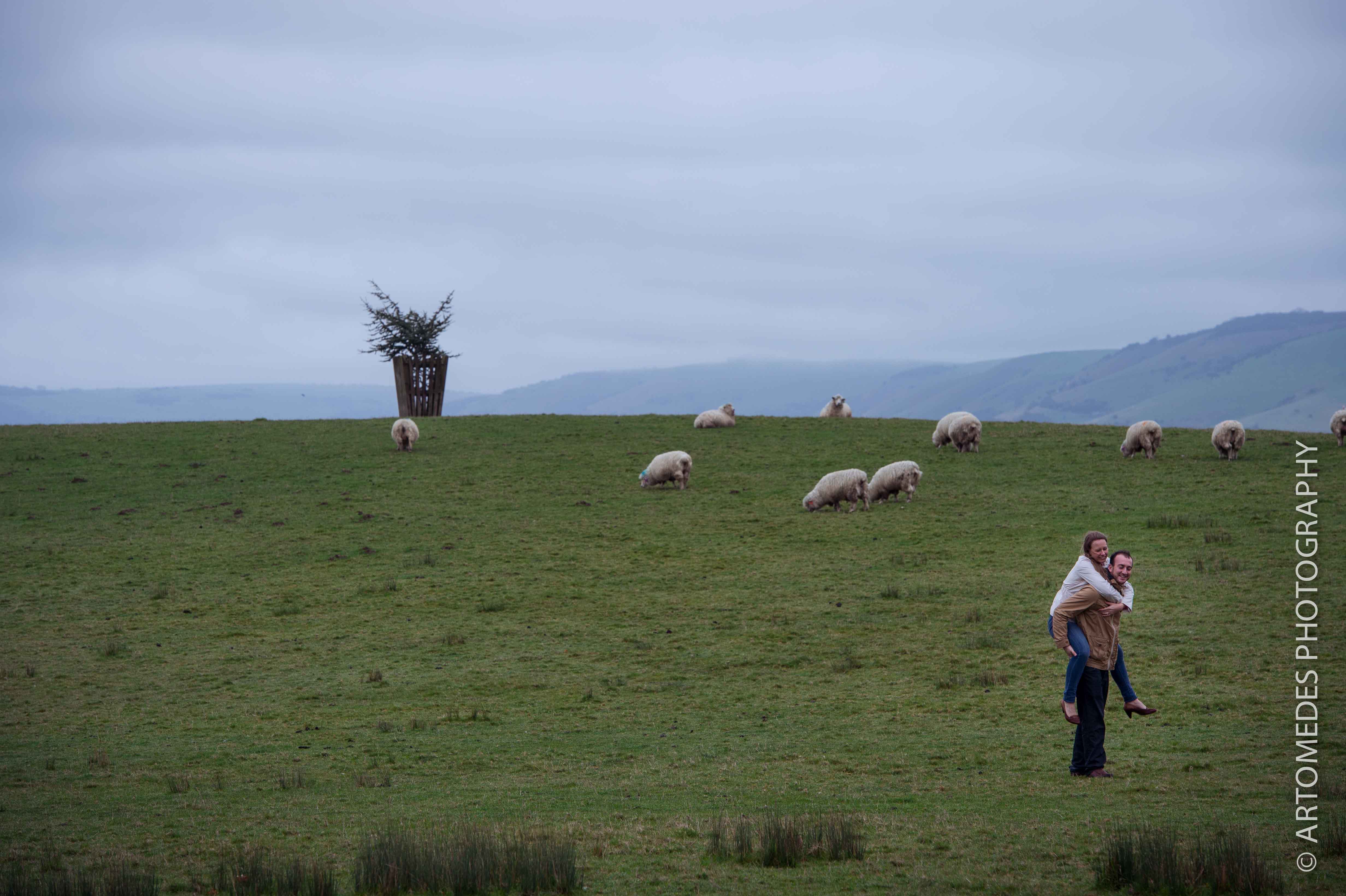 Wiston House Pre Wedding Shoot – I often do pre-wedding shoots with the couples whose weddings I’m shooting and last Sunday was the lovely Emma & Jacob’s turn. Personally, I love these sessions as they provide an invaluable opportunity to get to know couples a bit more, to get connected with them and to get the low down on their wedding plans. The weather wasn’t looking great for most of the weekend, but we braved the light rain and winds spending a bit of time wandering around their venue, the very impressive sixteenth century Wiston House, located at the foot of the South Downs in the heart of the West Sussex countryside. Oh, and there were sheep. Lots of sheep!