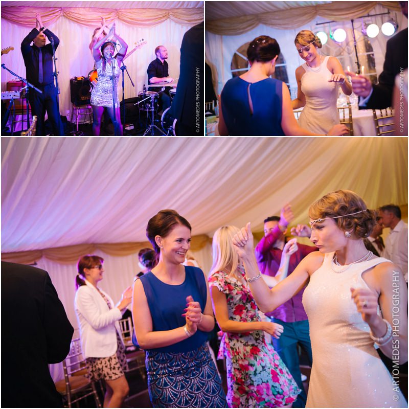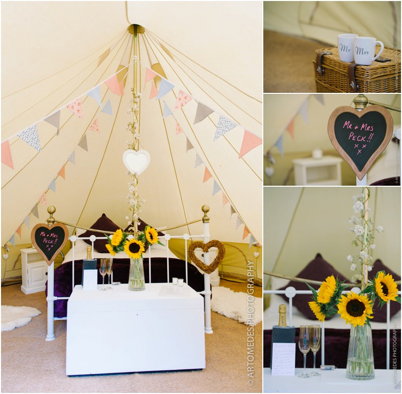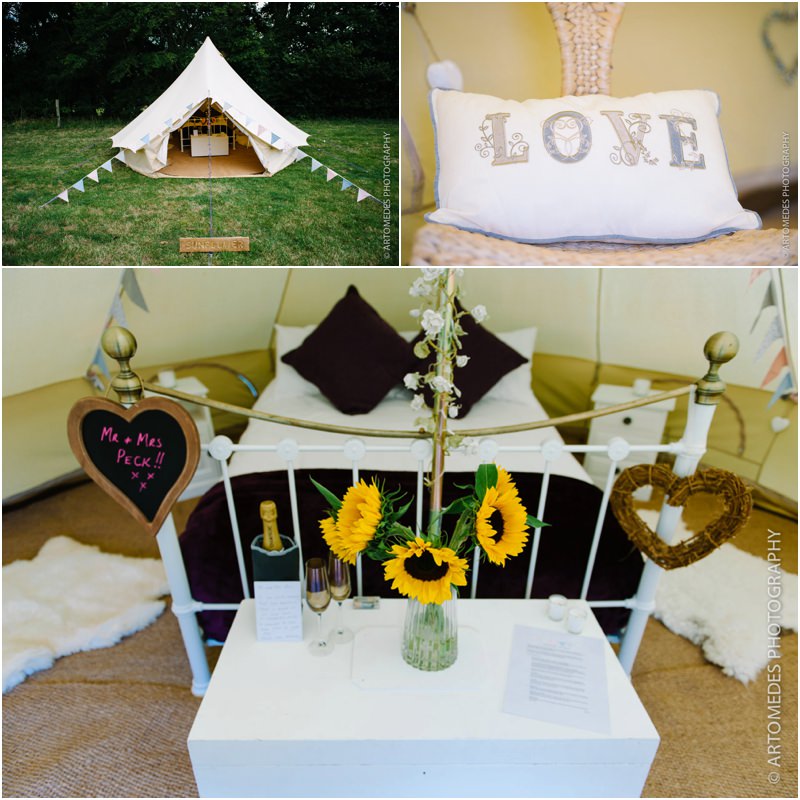 They even had their very own ‘Love Tent’ with a huge vintage cast iron bed, beautifully decorated with sunflowers, vintage bunting, rugs and snuggly blankets, love hearts, candles, fairy lights and champagne!! With lots of 1920’s inspired decorations and detailing, guests had a fabulous time. After a short walk around for some photos with Lee-Anne & Damien, they headed back for speeches some dancing and cake! They all danced their socks off to the totally rocking soul-funk sound of South Coast Soul Revue – what a voice that girl has!!! Blazin….